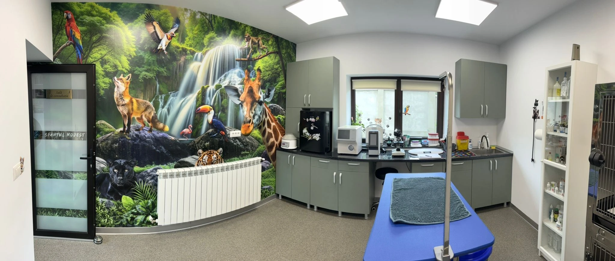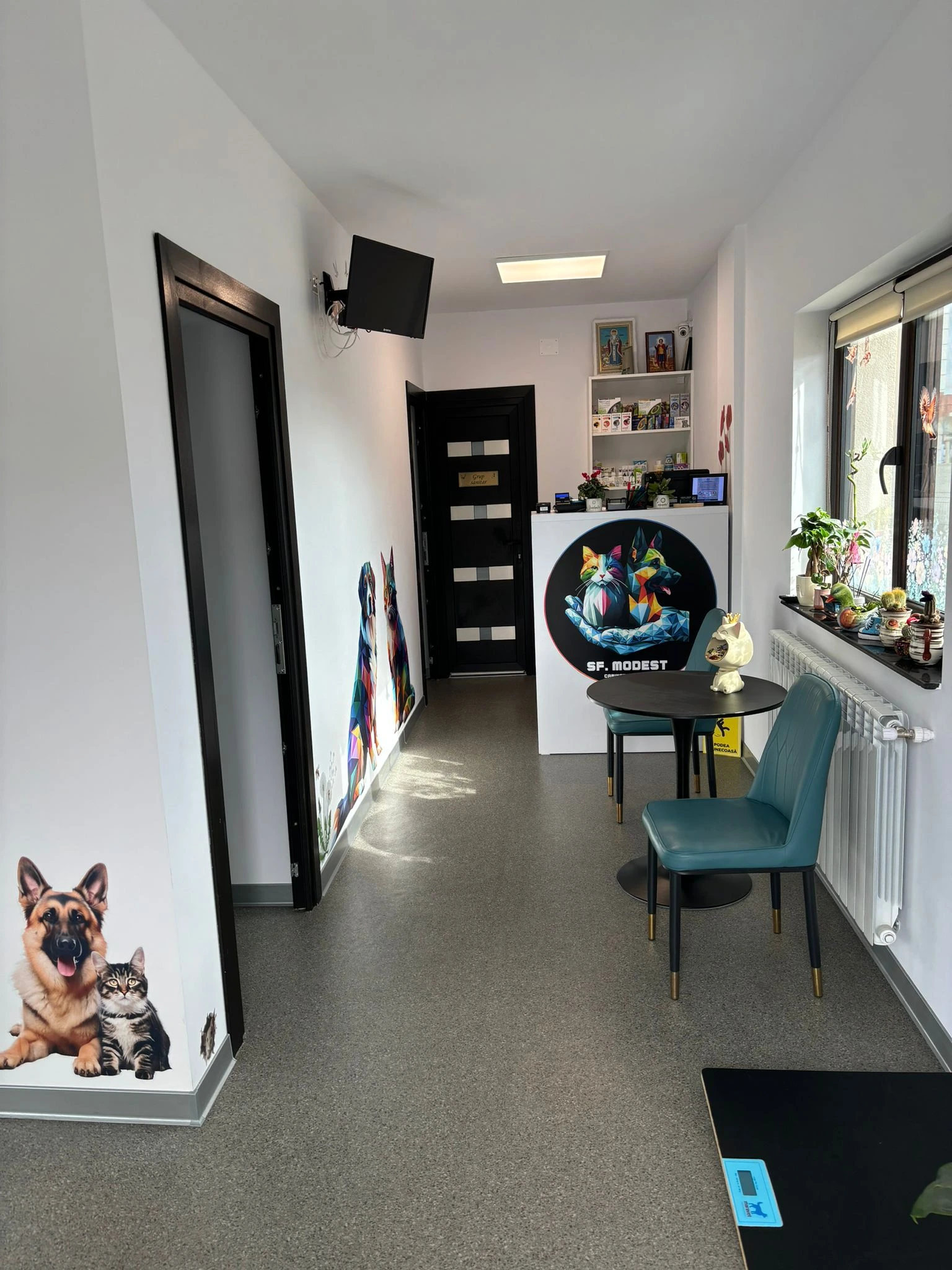 - Atmosferă Primitivă și Relaxantă – Cabinetul nostru este conceput pentru a reduce stresul și anxietatea animalelor, oferindu-le un mediu calm și confortabil în timpul consultațiilor.